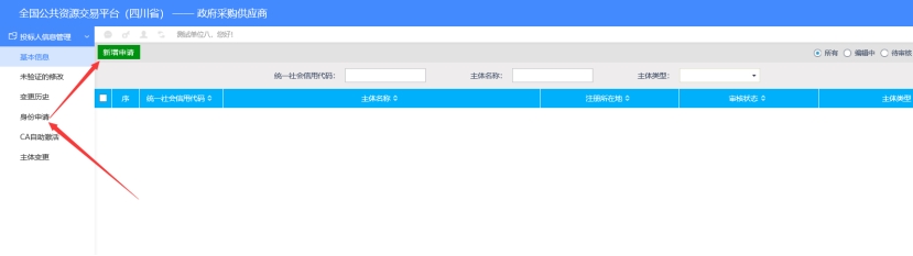 1、點(diǎn)擊身份申請(qǐng)頁面的“新增申請(qǐng)”按鈕: