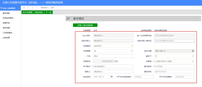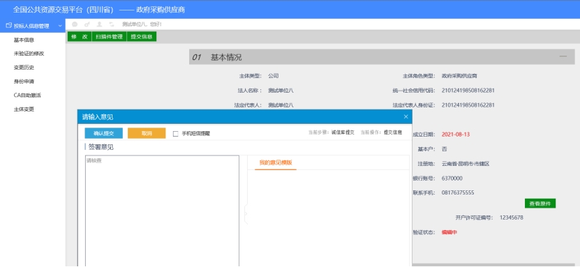 3、完成后點(diǎn)擊“下一步”,進(jìn)入頁面最后點(diǎn)擊“提交信息”,等省交易中心審核通過后即可: