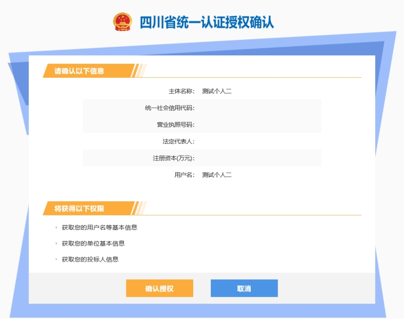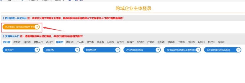 2、登陸后在此頁面點(diǎn)擊“四川省電子招投標(biāo)公共服務(wù)平臺(tái)”,并點(diǎn)擊確認(rèn)授權(quán):