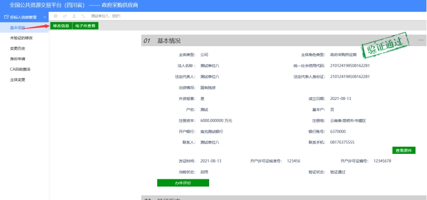 1、進(jìn)入后“基本信息”頁面,點(diǎn)擊“修改信息”: