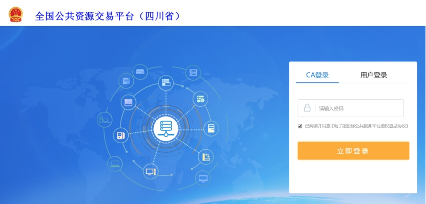 1、使用賬號(hào)密碼或CA登陸省統(tǒng)一認(rèn)證平臺(tái),地址:http://ggzyjy.sc.gov.cn/PSPSSO/login/oauth2login